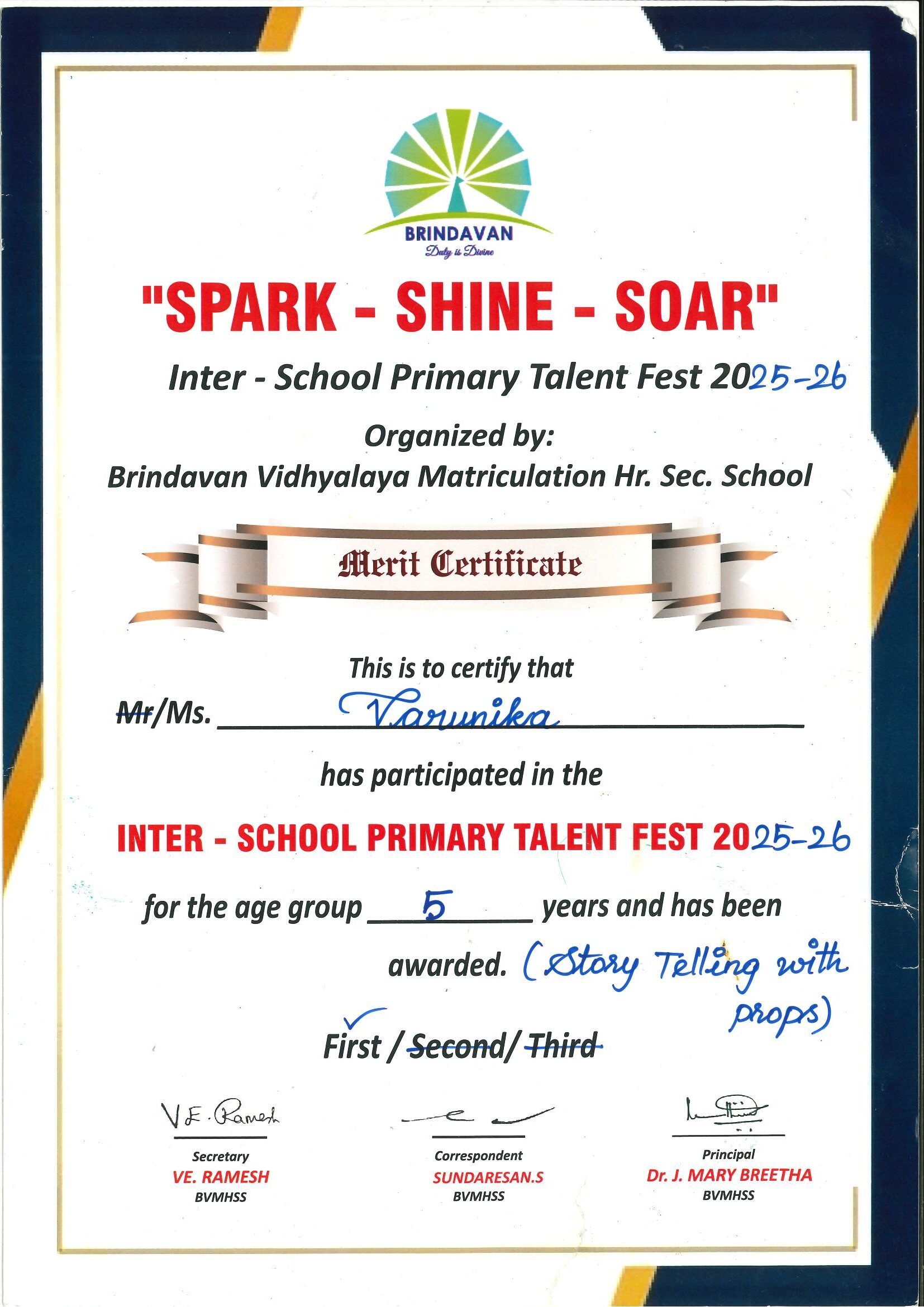 Loads of appreciations to this story teller on Winning FIRST Prize in the Story Telling Competition conducted by Brindavan Vidhyalaya Matriculation School on Saturday, 10.1.2026.