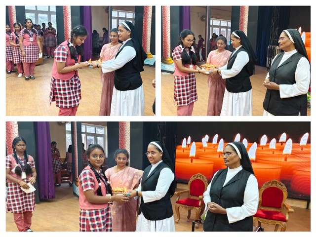 Light the spiritual light that others see the prismatic vibrancies of CHRIST JESUS in you. With this splendid message of spreading light, Rev Fr. Saju Chackalackal CMI Provincial, who addressed the gathering followed by prayer and the blessing . Lit Lamps were distributed by the Correspondent & Vicar Provincial Rev. Sr. Subha and Principal Rev Sr Priya Rose blessing every Avilite a future guided and guarded by THE OMNIPOTENT.