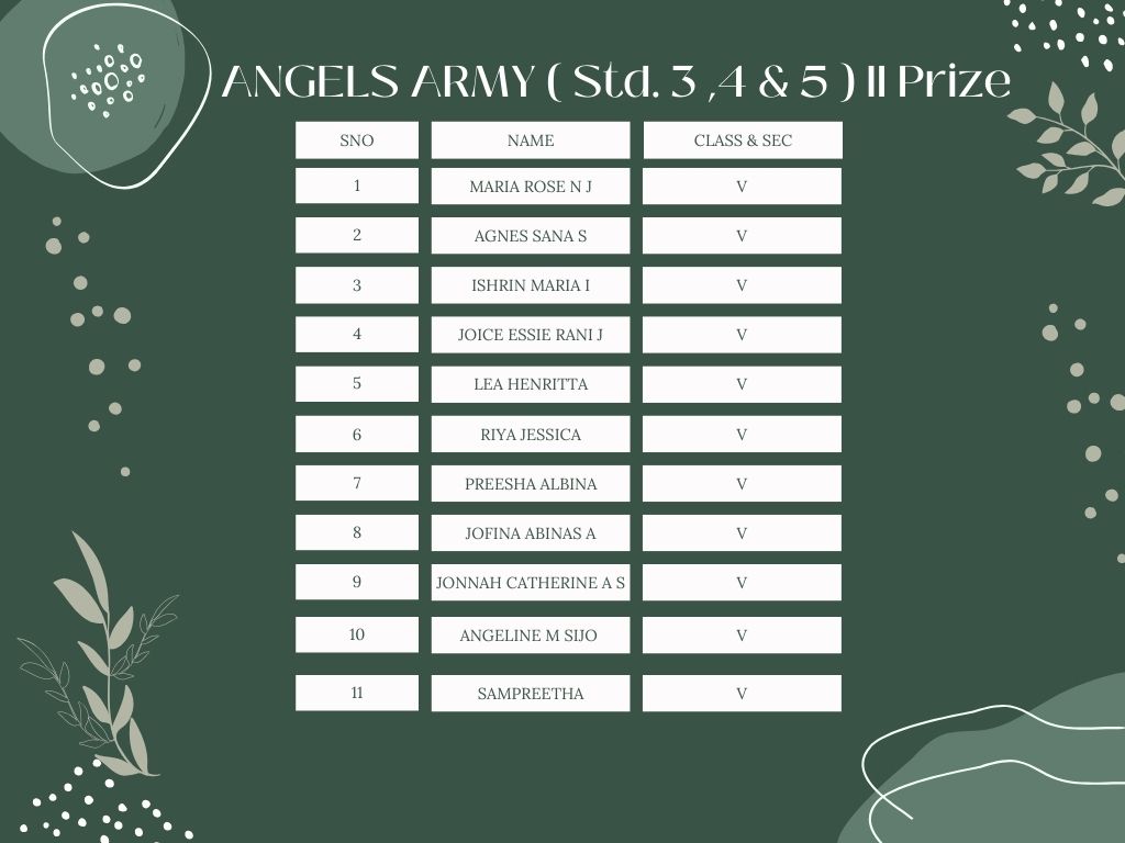 Angels Army ( Std. 3 ,4 & 5 ) II Prize