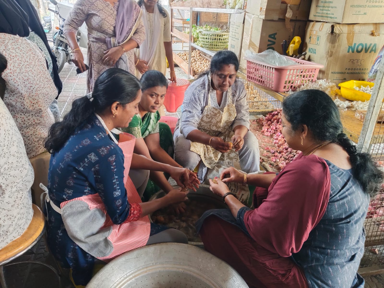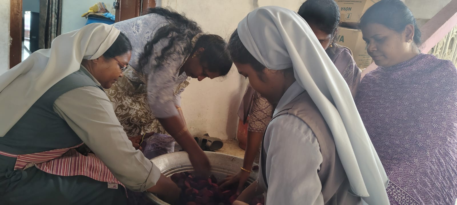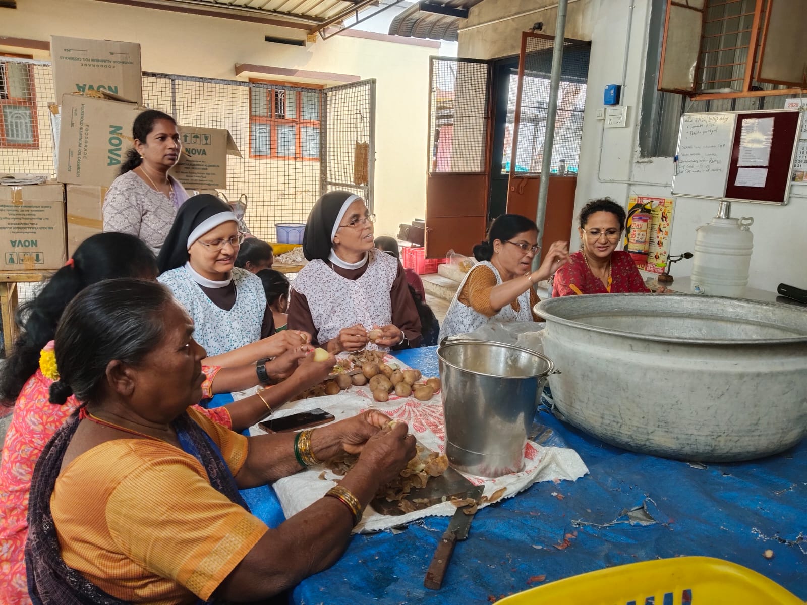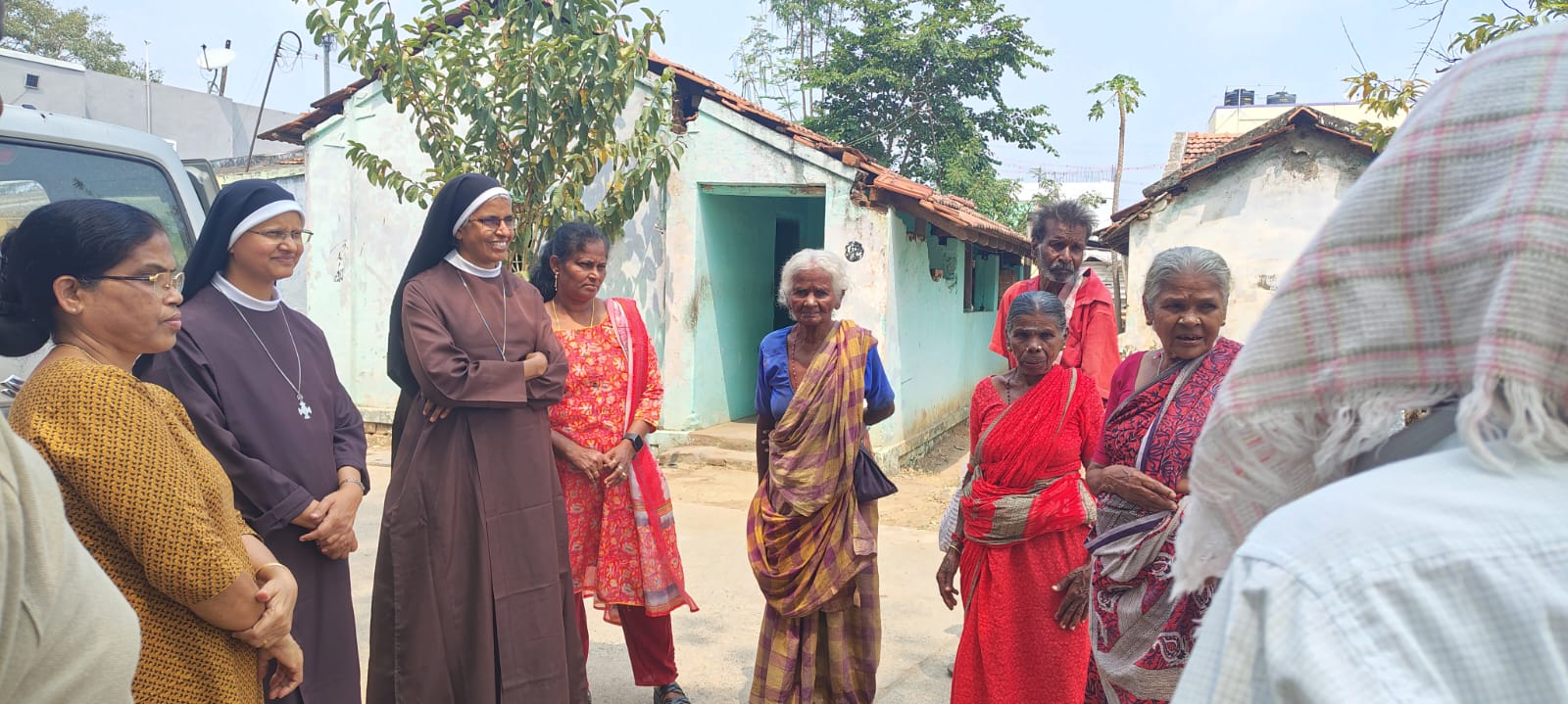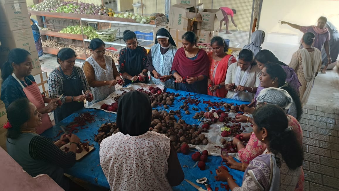 Social Service Staff helping Rev. Fr. Suraj MCBS distributing Food Packets to the poor in a way of extending Christ’s Love .