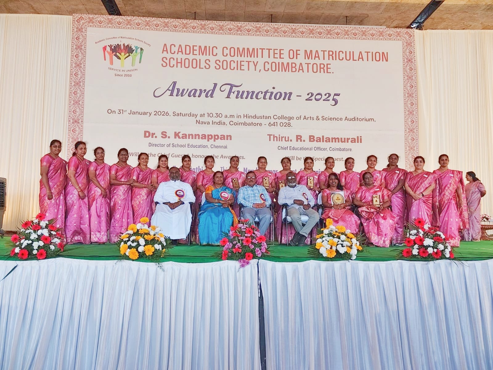Recipient of Award by Academic Committee of Matriculation Schools Society, Coimbatore on Saturday, 31.1.2026 at Hindustan College of Arts & Science, Coimbatore.